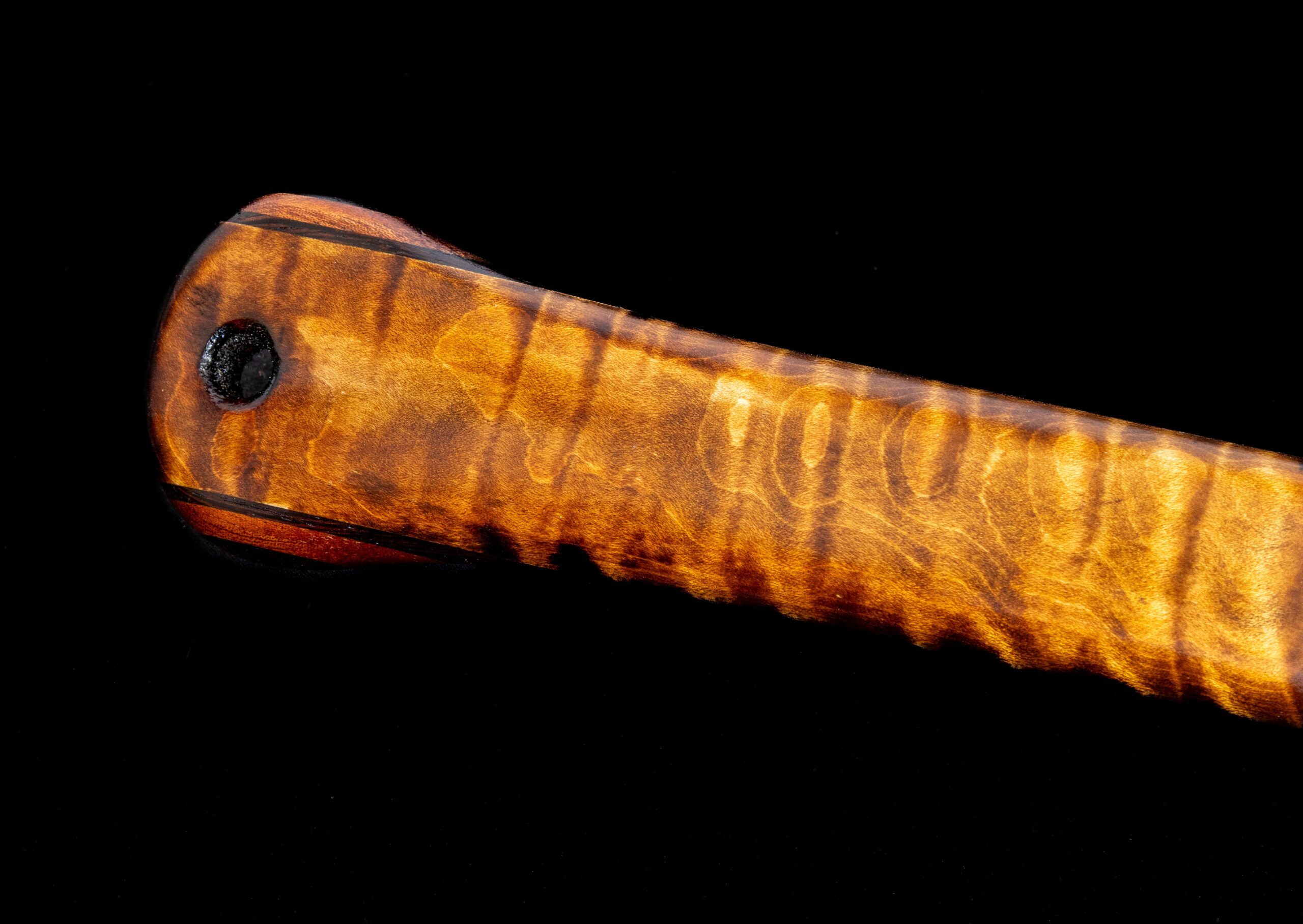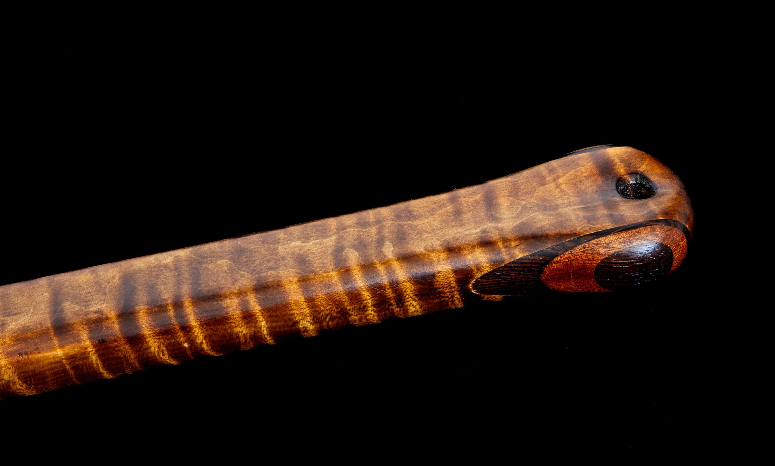 Pictures of tiger maple never does it justice.  This must be seen in person in the sunlight to appreciate its fully beauty!  This one has a hand carved scallop in the yoke as well as at the nub giving the look and feel of a true handmade net.  Make no mistake!!  This one is built to be used as well as admired.
